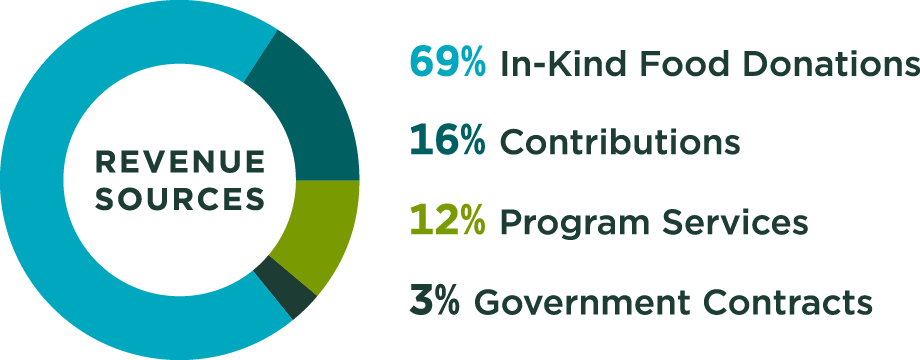 The organization experienced a $10.4 million decrease in net assets. This change was largely attributed to spending down of resources to bolster food in the community ($5.6 million) and less inventory ($2.6 million). As we continue to invest in our mission, we are proactively planning for the future to ensure the sustainability of our services.